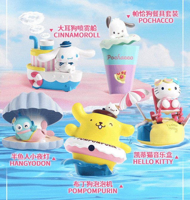 联名玩具有丑鱼小夜灯、kitty音乐盒、帕恰狗餐具、布丁狗泡泡机、玉桂狗喷雾船,样式多多。上线不久多个门店就出现周边断货现象,5月31日,必胜客宣布凯蒂猫音乐盒将限量返场。