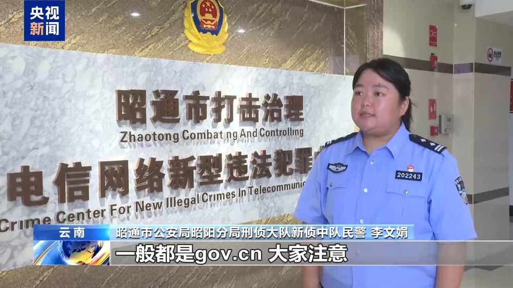 昭通市公安局昭阳分局刑侦大队新侦中队民警 李文娟:第一,查来源,正规的信息都是通过政府的官方平台发布,凡是带有链接的私人信息一律删除。第二,看域名,政府官方网站的后缀一般都是第三,敏感信息拒签收,涉及个人信息,如姓名、身份证号码、号、密码、验证码,一律不提供,同时,不能开启屏幕共享和人脸识别。